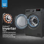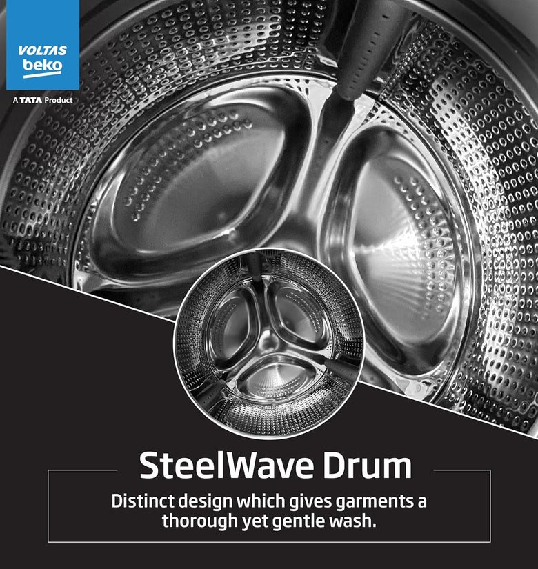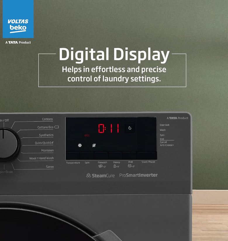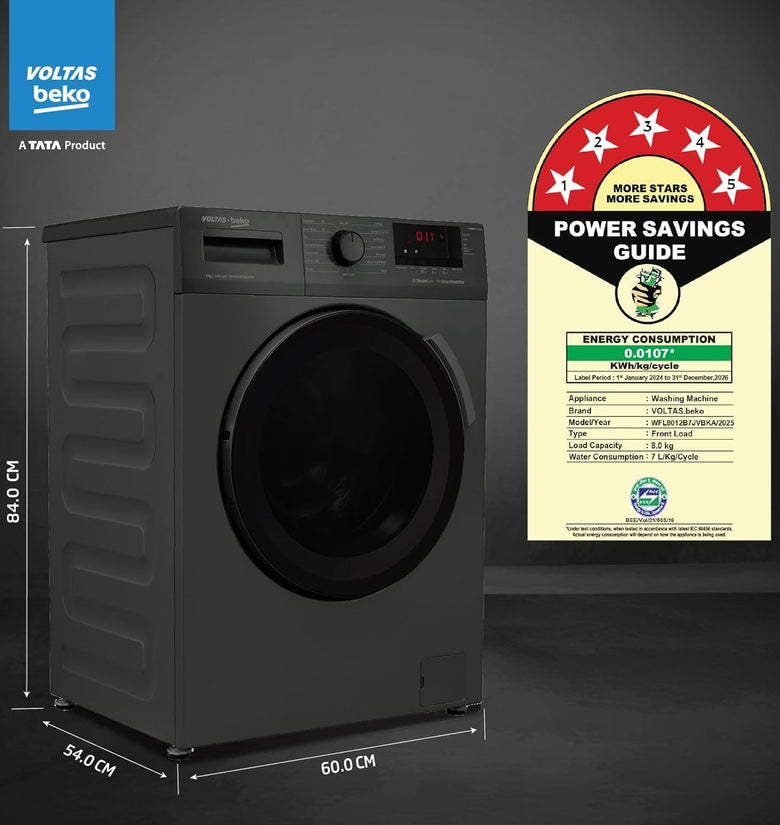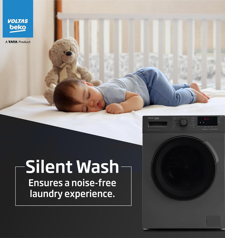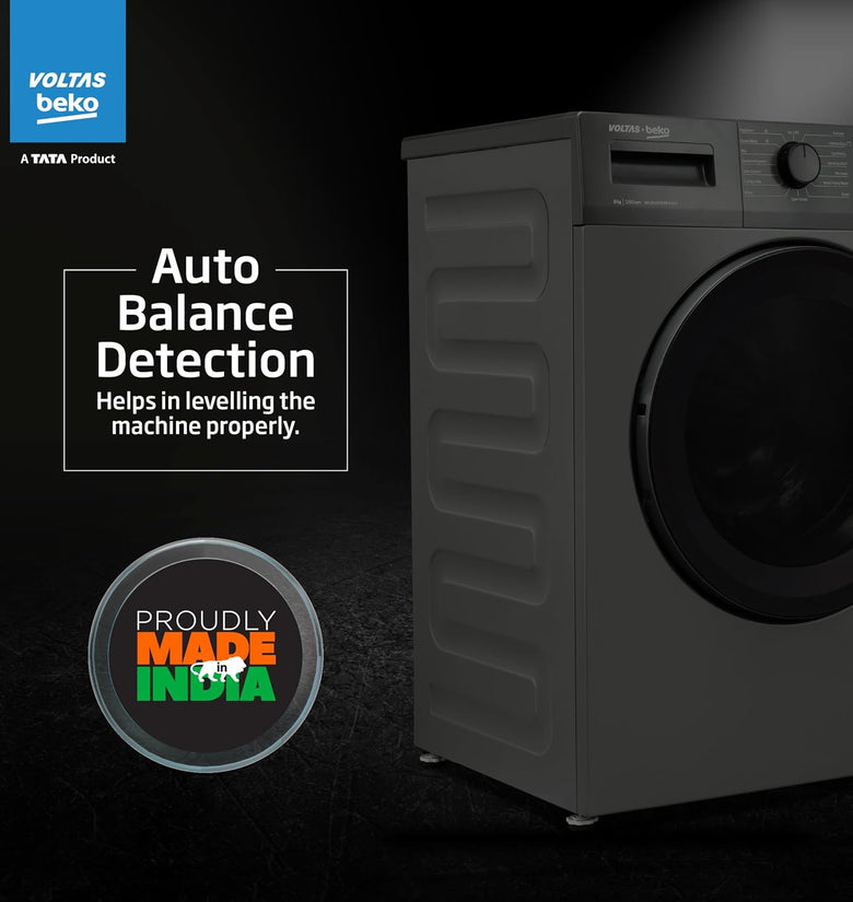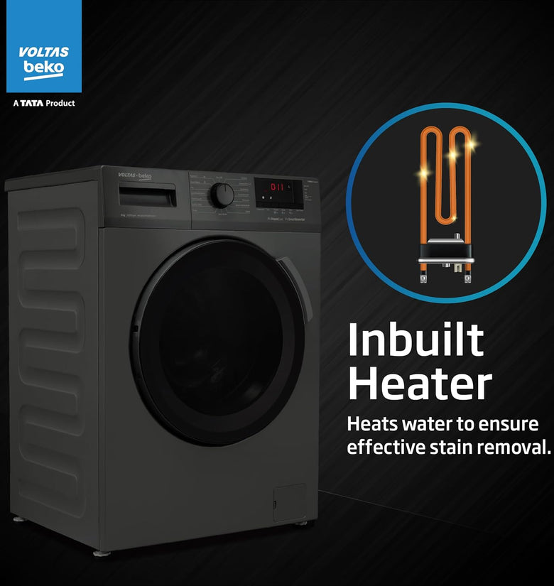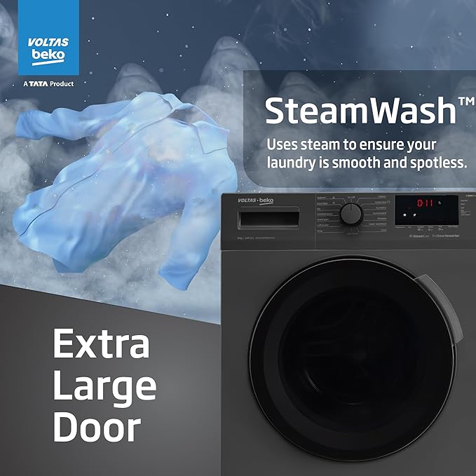 Voltas Beko, A Tata Product 8 Kg 5 Star Inverter Quick wash Fully-Automatic Front Loading Washing Machine (WFL8012B7JVBKA/AXV, Anthracite, In buit Heater/Hygiene steam) with 5 year comprehensive warranty