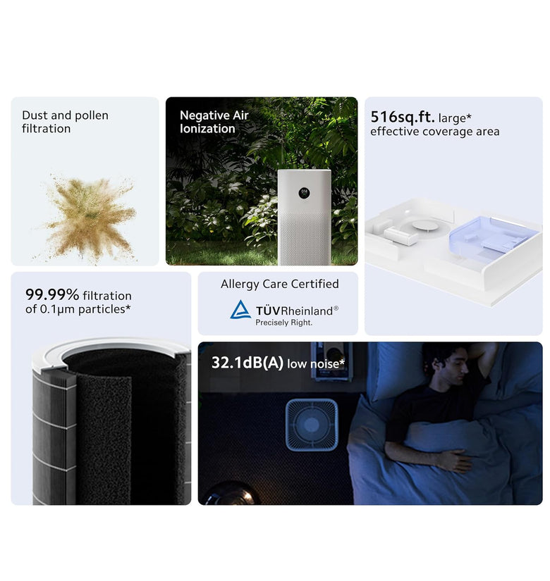 Certified Allergy Protection: World's First TUV Allergy Care certified air purifier, guaranteeing high-quality filtration and allergen control, trusted by consumers for its safety and effectiveness.