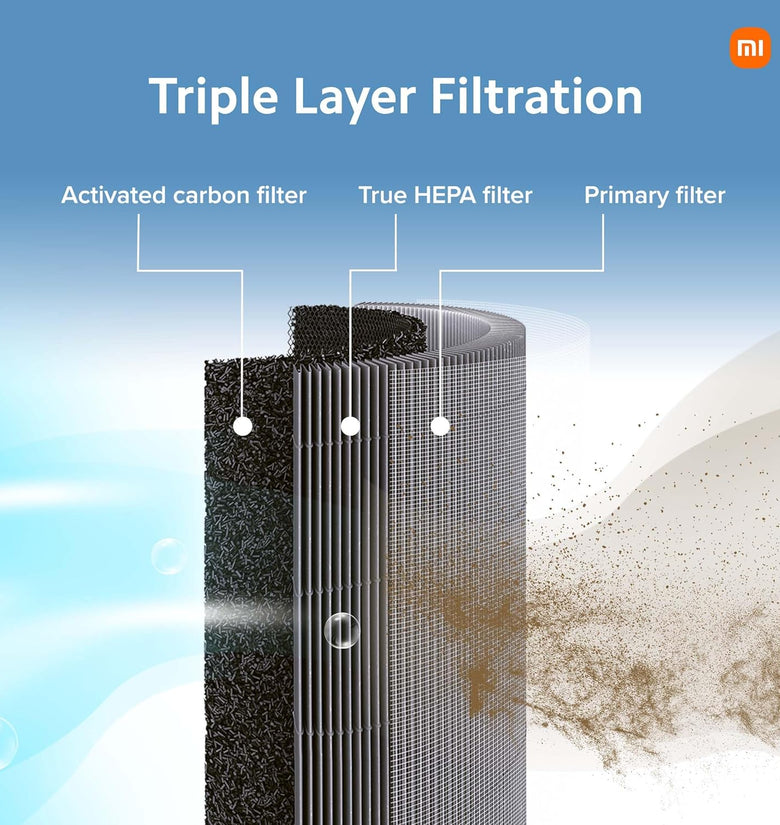 Triple Layer Filtration & 360° Air Intake: Features primary, True HEPA, and activated carbon filters, capturing 99.99% of 0.1μm particles, with 360° all-around air intake for optimal purification.